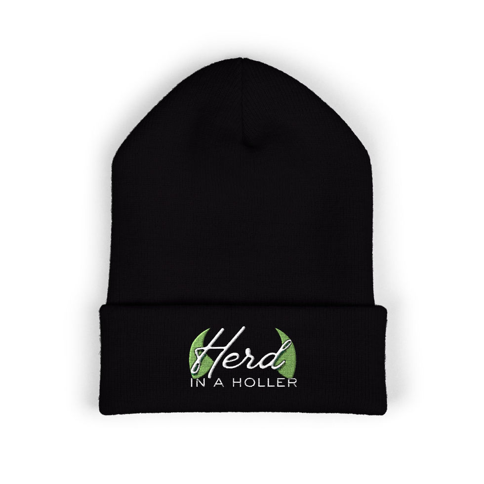 This cuffed beanie brings a low-key, horned edge to cold days.